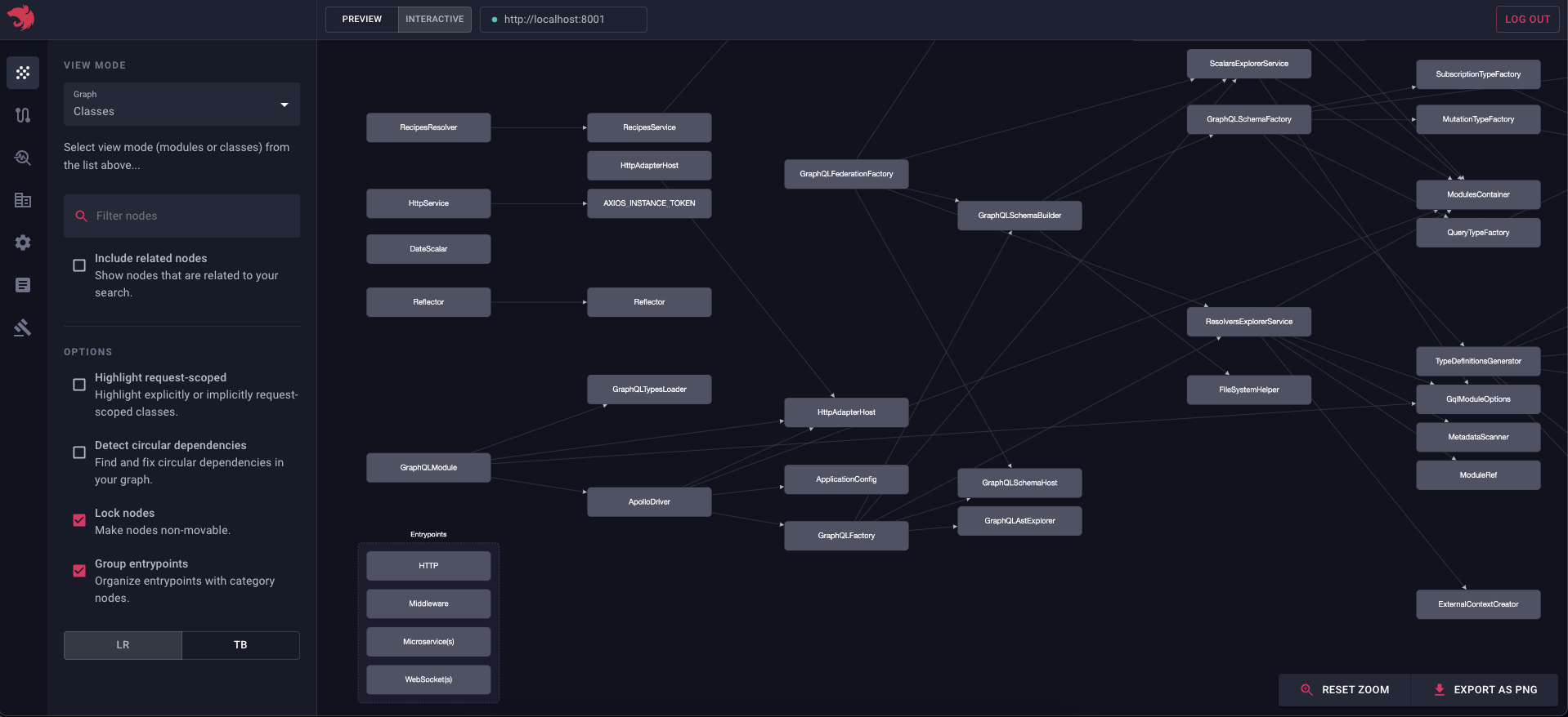 当团队中有新开发人员时,这个功能特别有用,您可以向他们展示应用程序的结构。您还可以使用此功能可视化特定模块(如 TasksModule)及其所有依赖项,这在将大型应用程序拆分为较小模块(例如独立的微服务)时非常实用。