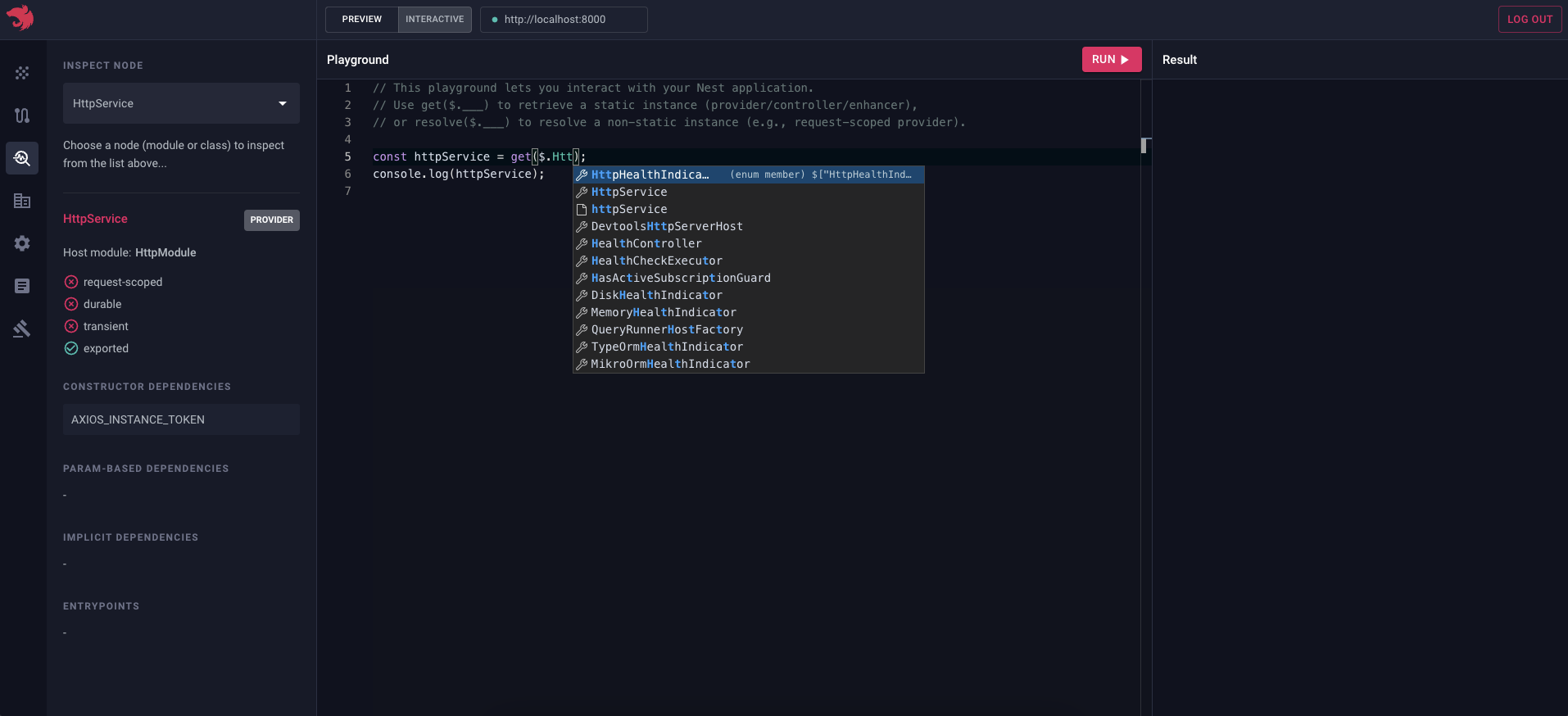 当 DevtoolsModule 导入完成且应用启动运行后(npm run start:dev),您应当能够访问 Devtools 网址并查看自省生成的图谱。